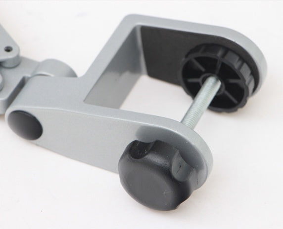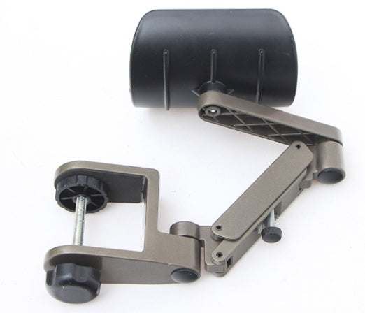 - Material: Metal/aluminum alloy arm with durable clamp and padded armrest top.